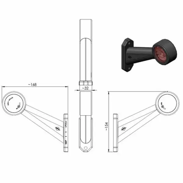 Gabaritna luč LED ima dve pozicijski funkciji osvetlitve (rdeča, bela), primerna je za vgradnjo na tovorna vozila, prikolice ali manjša dostavna vozila. Priklop je mogoč z kablom na 12V ali 24V napeljavo, gabaritna luč je odporna na različne vremenske razmere.