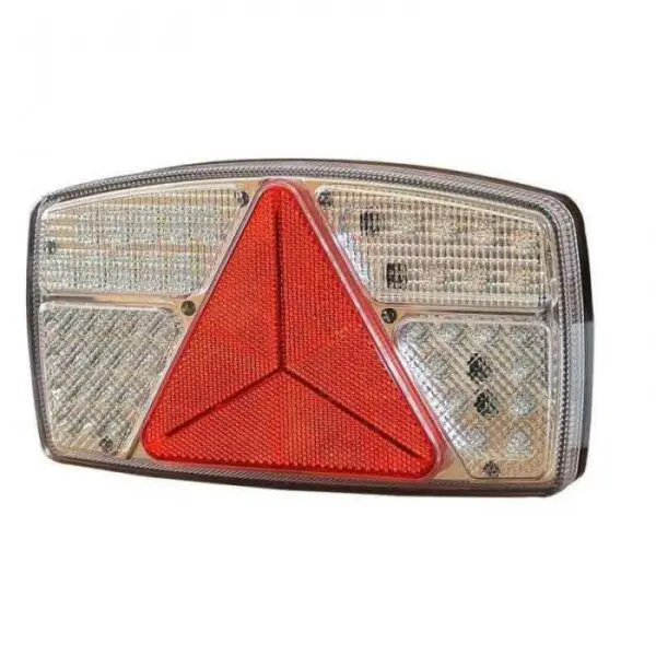 Zadnja desna LED luč za prikolice, luč ima trikotnik in več funkcij osvetlitve, priklop luči je mogoč z kablom (dolžina kabla na luči je 0,5m).
