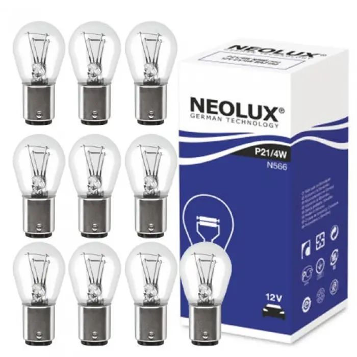 Žarnice P21/4W 12V NEOLUX, Dvopolna, BAZ15d – N566, 10 kos