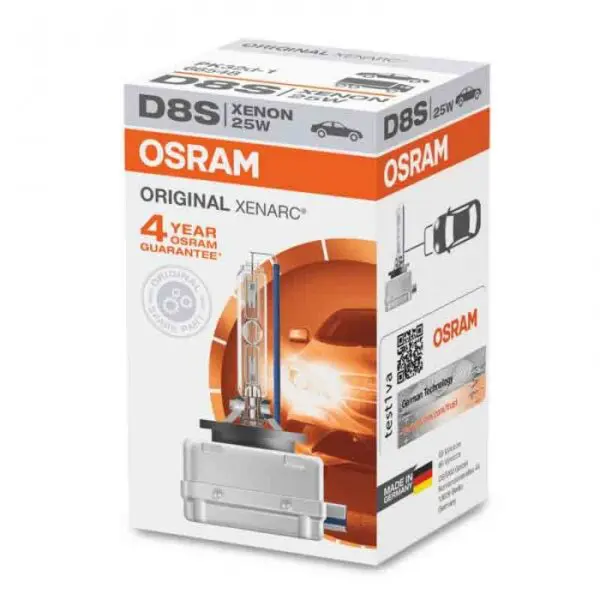 Xenon žarnica D8S Osram Xenarc  Original je primerna za vgradnjo v vsa vozila, ki imajo original vgradnjo xenon žarnic D8S. Xenon žarnice D8S Osram nudijo odlično svetilnost in dolgo življensko dobo, primerne so za žaromete z lečo.